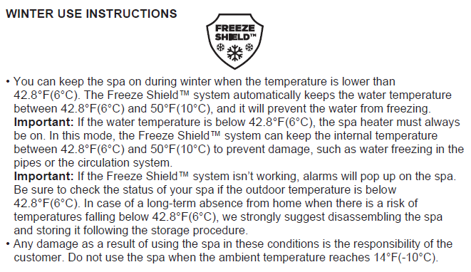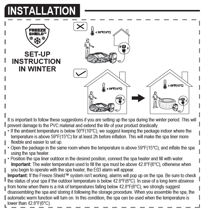 IMPORTANT INFORMATION REGARDING YOUR INFLATABLE SPA WITH FREEZE SHIELD™ TECHNOLOGY.